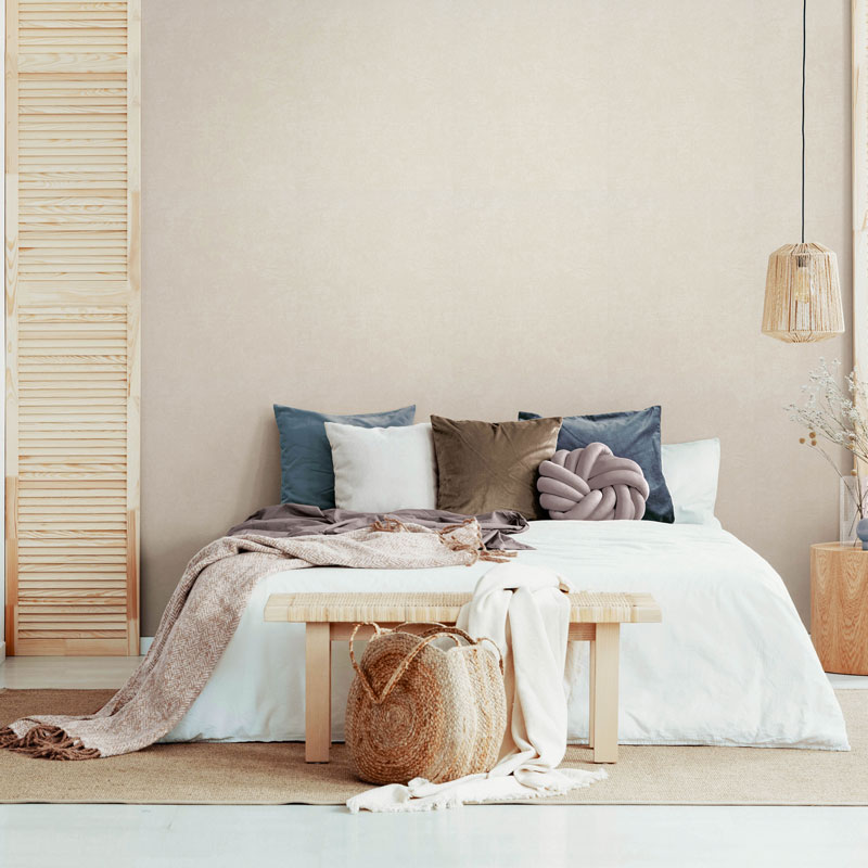 Este papel pintado combina a la perfección con muebles de madera natural, fibras vegetales o elementos decorativos de estilo nórdico o japandi. También es ideal para crear paredes de acento que den profundidad y vida a cualquier estancia sin recargar el espacio.